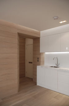 Located within Nell Gwynn House, an art deco building on Sloane Avenue. The client's aspiration was to create a one bedroom apartment that felt spacious. The solution was to create a flexible space with a wrapping Oak wall that separates the light-filled living areas from the private spaces. This wrapping wall also housed hidden storage areas that utilised every space within the property.